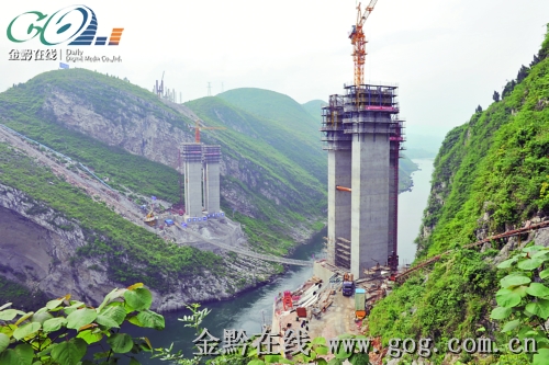 據貴州日報消息 思南縣至劍河縣高速公路烏江特大橋正在加緊施工。大橋位于思南縣境內,橫跨烏江騰龍峽谷,左線設計橋長1175米,右線設計橋長1050米,建成后大橋距離河面180米,是公路全線的重點控制性工程,總投資2億余元。(趙筑榮)