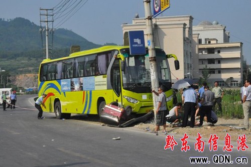 黃平發生惡性交通事故 三輪車鉆入大巴車底