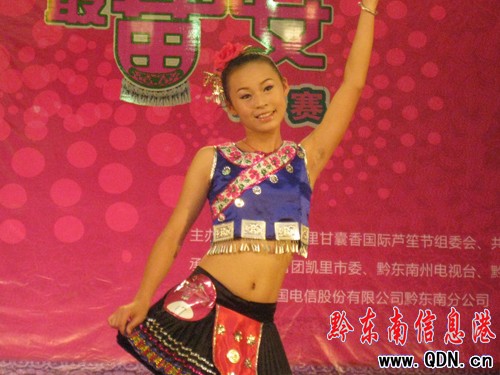 在海選現場,選手們身著美麗的苗族服飾,頭戴精致閃亮的苗族銀飾品,在最美苗家女這個的舞臺上盡情的展示著自己的才藝表演。苗族舞蹈和苗族歌曲成了選手們當天參賽的最佳選擇,舞臺上,無論是在校學生,舞蹈老師,還是公司職員,她們都抱著一個信念,爭當最美苗家女,用最曲美麗動聽的苗族歌曲,和最優美的苗族舞蹈 ,把黔東南所獨有的苗族文化淋漓盡致的展現給觀眾,通過這個舞臺傳播出去。(李麗娟)