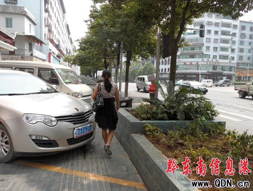 今天中午11點40分,記者在凱里市房產局門口的人行道上看見,汽車停滿了人行道,要過斑馬線的行人只得繞過汽車。(穆文碧)