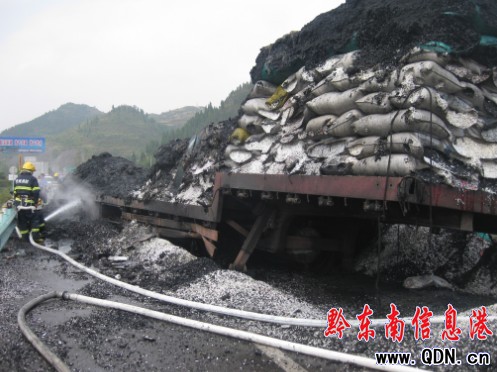 麻江縣消防大隊劉隊長告訴記者,在到達現場后,他們一邊對事故現場危險范圍內實施警戒,并禁止過往車輛通行,一邊投入到救火的行動中。氣溫高、高速路面的溫度也高,不排除高溫起火引起爆炸,具體原因則有待于調查。(凌忠云)