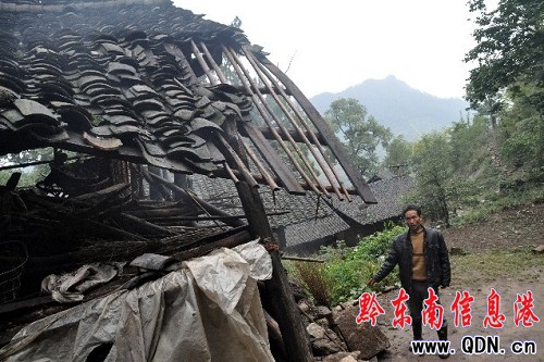 走了數百米,遇見了村莊,不少的石塊被隨意堆放在路邊,甚至在路坎下的陡坡面上,對民居構成了極大的威脅!扒皫滋,一塊數百斤重的石頭滾下坡去,打壞了村民田某某家的豬圈,幸虧沒有傷及村民。”一位隨行的村民介紹說,隨后,在他的帶領下,記者看到了被打壞的豬圈(如圖)。
