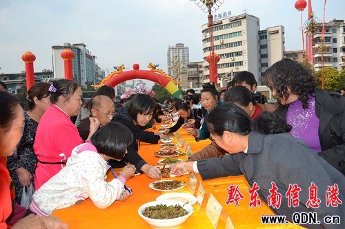 11月26日,貴州省第四屆鄉村女大廚“藍莓杯”烹飪大賽在凱里市萬博廣場舉行。除了全省9個市、州、地的29名參賽選手以外,還有一群來自我州各縣的15名鄉村女廚師,他們不為比賽,只為展示廚藝,并獲得了主委會頒發的紀念獎。