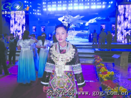 11月16日夜,全國“十佳自強女孩”頒獎儀式在安徽省淮南市體育文化中心隆重舉行,吳貴情身著侗族盛裝參加儀式。