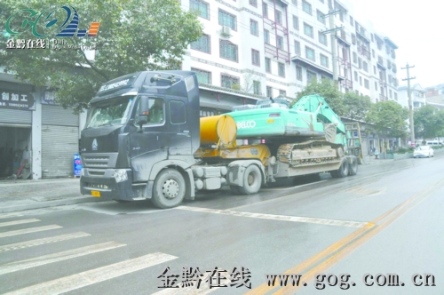 14日上午9時許,記者在凱里第一水泥廠看到了停放在這里的拖車,車上懸掛的是黔南州牌照,拖車上的挖掘機還沒有移走,履帶上滿是泥土。