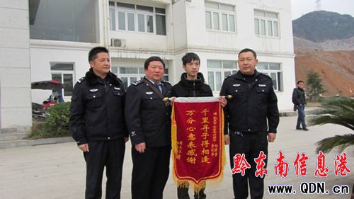 小偉被拐時剛滿6歲,一晃15年過去了,現已是一個21歲的青年。在認親時,楊昌華、周玉蘭夫婦抱著一別15年的的兒子失聲痛哭。3月5日楊某某一家人特意為凱里警方送來了一面印有“千里尋子得相聚、萬分心意表感謝!”字樣的錦旗。(鄭旭軍)