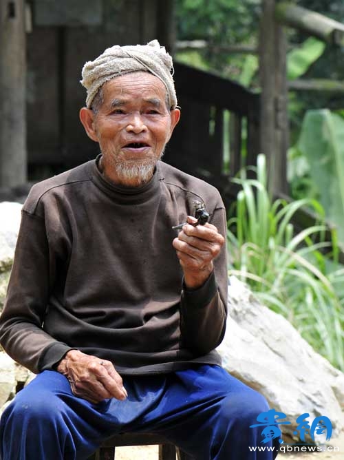 從江縣停洞鎮(zhèn)九日村,已經(jīng)109歲高齡的余老懂老人,雖然行動不是很靈便,但說話還是很清楚。老人家屬說,余老懂老人飯量現(xiàn)在一直保持在兩碗。