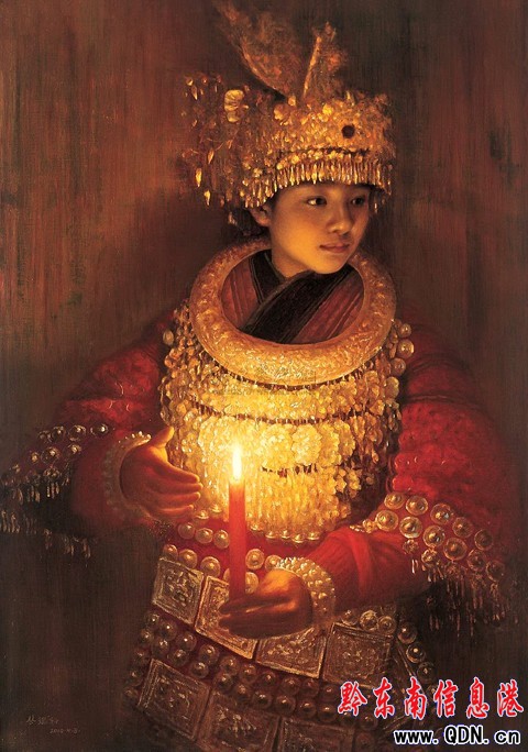 據(jù)悉,43歲的叢瑞軒為吉林人,曾就讀于中央美術(shù)學院,2000年去加拿大學習古典畫并為畫廊繪制歐洲先輩古典油畫。2005年回國創(chuàng)作并應邀到貴州民院講學。其間,到貴州黔東南采風后,便被當?shù)毓艠愕拿缍蔽幕淼梗S后把家安在凱里,潛心進行少數(shù)民族題材的美術(shù)創(chuàng)作。“我驚嘆于多彩貴州神秘的民族文化,是多彩貴州給予我創(chuàng)作營養(yǎng)。”叢瑞軒坦言。