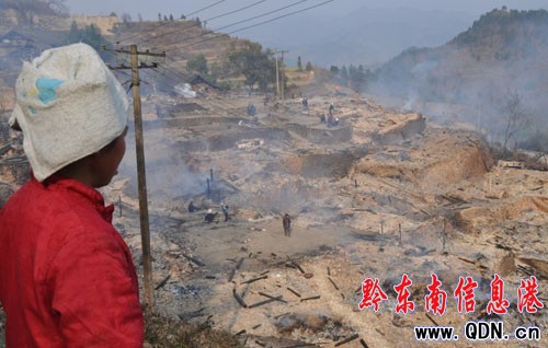 本港訊 (記者 楊驥 攝影報道)12月30日凌晨,臺江縣施洞鎮貓坡村發生火災事故,造成40棟120間房屋被火毀,46戶農戶200多人受災。在事故現場,臺江縣委常委,紀委書記張運良告訴記者,受災的40棟房屋的戶主在此前均參加了農村房屋統一保險,因而每棟房屋可獲約7000的保險賠金。