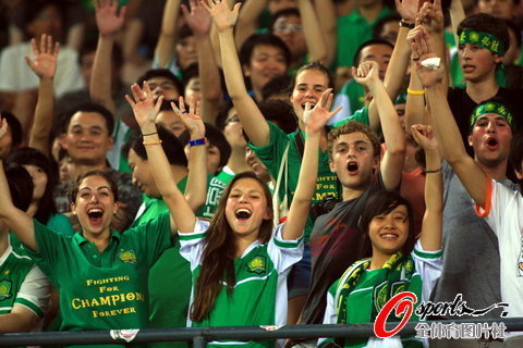 2010年7月14日,2010年中超聯賽第12輪:北京國安vs重慶力帆,美女球迷扮惡魔壯漢大吹嗚嗚祖拉。