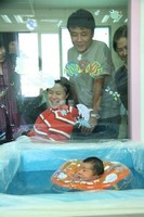 有激動(dòng)的淚,還得有欣喜的笑。今天有一件讓王楠很開心的事,剛出生四天的兒子第一次游泳……小家伙套著一個(gè)救生圈,在水里悠閑的蹬著小腿兒,蠻有健將范兒的,小家伙很有體育天賦呢。
