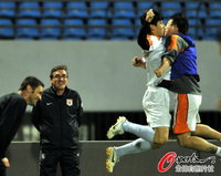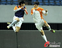 騰訊網(wǎng)訊 2010年9月28日晚上6點,山東魯能泰山隊來到山東省體育中心體育場進行備戰(zhàn)陜西隊的賽前訓練,魯能隊總經(jīng)理孫國宇慰問球隊,并鼓舞隊伍輕裝上陳戰(zhàn)勝陜西。
