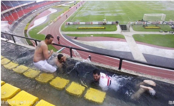 組圖:巴西暴雨球場搞笑奇觀 球迷看臺游泳歡