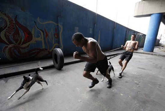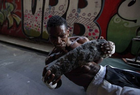 騰訊網訊 作為一名有抱負的拳擊手,巴西人德奧-里維拉雖然生活在貧民窟但卻從未放棄自己的拳擊夢想。圖中,德奧-里維拉在當地一家體育館外附近的高架橋下,采用最原始的訓練方式,并利用廢棄的卡車輪胎來鍛煉肌肉。作為他的教練,前職業拳擊手尼爾森-加里多正在啟動一項針對窮人和邊緣人口的拳擊項目,并希望通過這些訓練和比賽改變這些人對于生活的看法和現狀。