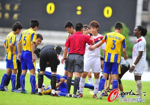 2011年5月8日,2011年中甲聯賽第8輪,湖南湘濤vs天津松江,終場前,湘濤場邊擔架人員將客隊球員王鵬摔在場邊使得場面一度混亂。