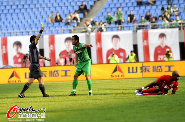 遼寧隊掌握了場上的主動,國安隊沒有什么機會。15分鐘,張稀哲防守金裕晉犯規(guī),吃到本場比賽的第一張黃牌。17分鐘,遼寧隊獲得角球機會,陳星將球開到后點,奧托擺渡一下,于漢超的打門放了高射炮。第20分鐘,遼寧隊發(fā)動中路進攻,奧托、于漢超、陳星前場倒三角配合,但在最后一傳上除了差錯。24分鐘,遼寧隊在國安隊的半場進行圍搶,陳星突至底線附近小角度打門,可惜打在邊網上。27分鐘,小馬丁直塞球送到禁區(qū),喬爾后腳跟將球敲給張稀哲,后者起腳打門,被對方門將得到,這也是本場比賽國安隊的第一腳打門。28分鐘,國安隊請求換人,祝一帆換下張稀哲。