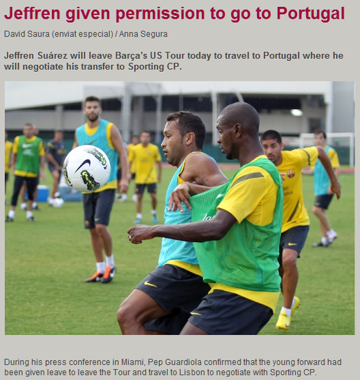 日前巴薩正在美國邁哈密進行夏季熱身賽,瓜迪奧拉在新聞發布會上也證實赫弗倫將要加盟葡萄牙俱樂部里斯本競技隊。瓜迪奧拉表示赫弗倫已經獲得許可,他將離開巴薩從邁哈密飛赴葡萄牙,就個人合同與里斯本俱樂部進行談判。