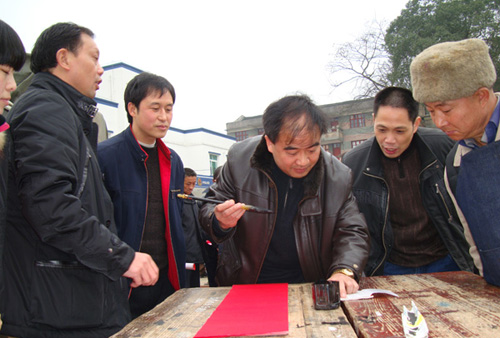 天柱2位副縣長給群眾義寫春聯(組圖)