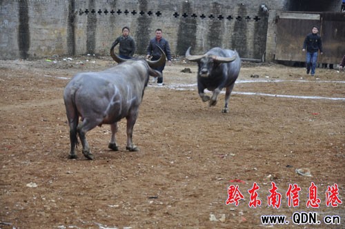 2月10日,“東方斗牛”牛王爭霸賽繼續在凱里錕锜斗牛場進行,當天進行的是A組重量級的比賽,凱里市桃園村楊順先的斗牛“大寬”休戰8個月后再次出山,五場比賽僅戰1分多鐘就拿走冠軍,成為凱里斗牛史上用時最短的冠軍。