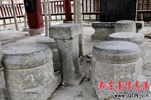 閣中的石碑和石墩