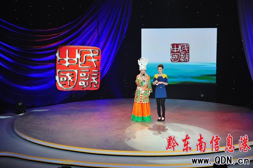 圖為黔東南州著名歌手阿娜丹受央視邀請赴中央電視臺音樂頻道《民歌中國》欄目錄制現場。