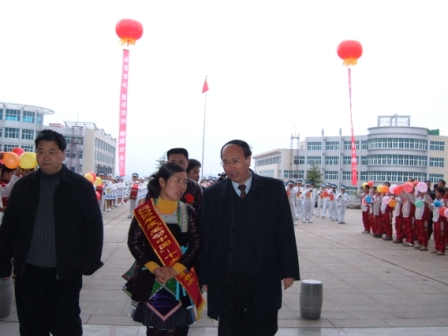 圖:李春燕報告團在州長李月成的陪同下步入會場