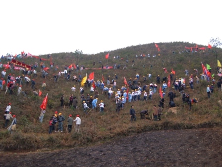 此次活動的主題是:“高舉旗幟跟黨走,誓把荒山變綠洲”。州領導李月成、羅亮權、龔紹濤、楊正明和凱里市長吳榮陽等參加了此次活動。