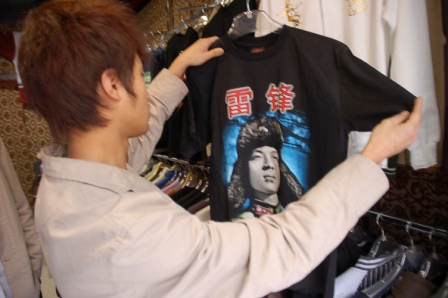 圖片新聞 (吳如雄) 3月5日,位于凱里鬧市區的一家服飾店經營的印有雷鋒畫像的文化T恤十分走俏,一大早就銷售了10多件。據悉,當天是學雷鋒日,一些年輕人購買印有雷鋒畫像的T恤衫,以表達對雷鋒的崇敬和懷念之情。