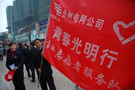 圖片新聞(楊秀寬 記者 姜秀波)3月5日,“青春光明行”貴州電網(wǎng)公司青年志愿服務(wù)隊授旗啟動儀式在全省各地州市舉行。據(jù)介紹,“青春光明行”主要是通過青年志愿服務(wù)增強(qiáng)共青團(tuán)意識,讓青年志愿者們主動來承擔(dān)社會責(zé)任為社會服務(wù)。當(dāng)日,凱里電網(wǎng)有超過200名共青團(tuán)員在所屬轄區(qū)參加了此項活動。