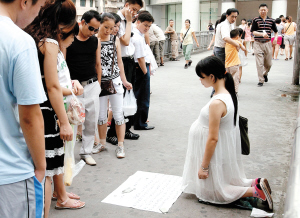 一名3年來長期在深圳街邊乞討,自稱湖南人、丈夫遭遇車禍的孕婦,多次被記者的鏡頭拍攝到。2006年9月5日晚,她因涉嫌欺騙,被警察帶回派出所調查。