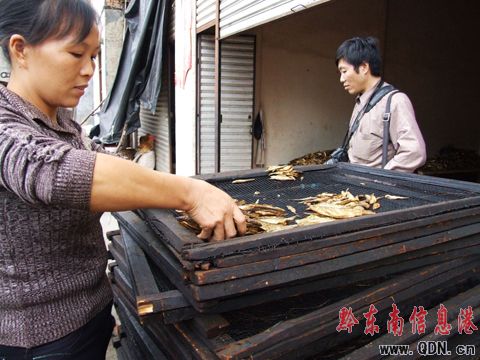 三板溪電站建設,仰阿莎湖的形成給庫區移民帶來了致富的福音。豐嬩遼闊的湖面吸引了當地農民紛紛搞起了水上產業發展。形成水上養殖、水上作業、水上加工等經濟產業生產鏈。僅劍河南加鎮上從事魚類加工的就有13家,日加工魚干1.3噸。圖為該鎮堡上村劉氏魚類加工鋪員工在烘烤加工魚干場景。( 楊清雷 攝影報道)
