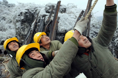 2008年貴州萬(wàn)名電力職工不畏嚴(yán)寒抗冰災(zāi)