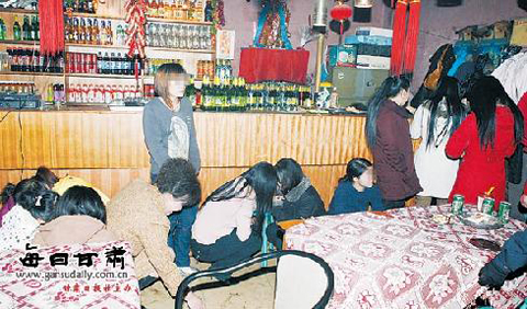 隨后,執法人員來到位于和政路中段的“天成酒城”,酒城服務生看到民警進入后,沖向柜臺準備啟動示警系統,被警方當場制服。民警隨后來到該酒城的“黑燈舞池”,猛然打開手電筒后,不堪入目的一幕進入大家的視線,該酒城的“黑燈舞池”被隔成兩個隔斷,其中靠里邊的一個隔斷里,近10名男女正在進行猥瑣交易,有人甚至在角落里賣淫。發現民警后,舞池里的男女急忙整理衣物蜂擁而出,只留下地面上散落的安全套以及衛生紙。執法人員將該酒城的17名小姐帶到吧臺核查身份時,卻發現她們全部沒有攜帶身份證,警方于是要求她們報出自己的身份證號碼以及個人信息,不少人開始胡亂編造,甚至有人報出的身份證號碼出生于1905年,由于該酒城存在證照不全以及涉嫌容留賣淫的情況,執法人員也對該酒城實施臨時查封。