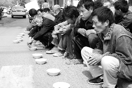 26個民工在鬧市集體乞討 曾因討薪遭暴打(圖)