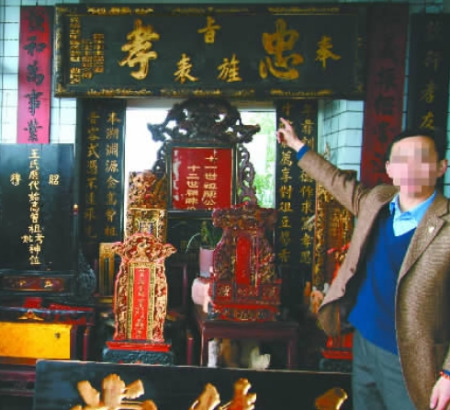 面積不到100平方米的房間里,到處擺著各式各樣的祭祀牌位。大的有幾米見方,占據了好大一塊空間;小的就是一塊牌子,有10幾個小牌位擺在一張很小的桌子上。與記者同行的一位先生,環視滿屋后竟覺得腿有些發軟,“這供的可是先靈啊。”