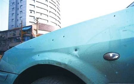 資料圖:11月26日,武漢街頭不明物體爆炸,一輛出租車(chē)遭“彈片”擊中。