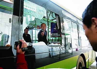 資料圖:11月26日,武漢街頭不明物體爆炸,一輛公交車(chē)受損,圖為公交車(chē)司機(jī)在查看受損情況。記者石一 攝