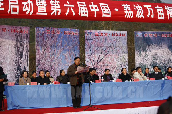 荔波縣委書記閔路明到歡迎詞,他說:“舉辦此次萬畝梅花報春節活動,不僅填補了貴州冬季旅游的空白,同時拉開了貴州賞花季啟動序幕,目的在以花為媒,以旅游觀光為媒,搭建一個讓外界了解荔波、讓荔波走向世界的交流平臺,歡迎世界各地游客前來荔波旅游觀光!彼岢觯骸傲幱10年的時間把荔波打造成優美的山水景觀城,獨具魅力的文化體驗城,幽雅恬靜的人居環境城!