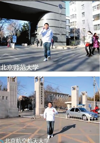 在“穿越北京”的視頻中,肖劍一共出現(xiàn)在了40多所高校門口,跨越了多個(gè)城區(qū)。兄弟倆在北京待了好幾天才拍完。
