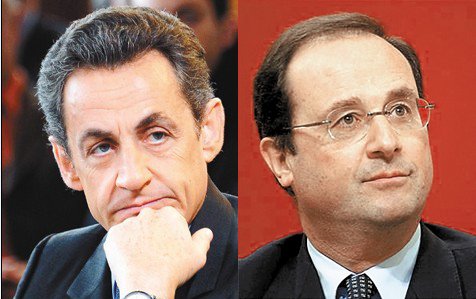 法國總統(tǒng)薩科齊左與社會黨總統(tǒng)候選人奧朗德