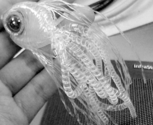 該網友還貼出了小禮物的照片,一條非常精致的小魚,用點滴管編成的,“挺好的,就拴在背包上,這是紀念。”