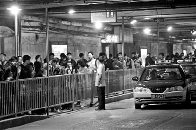 北京西站出租車等候處,乘客排起了長隊。 本報記者 孫純霞 攝