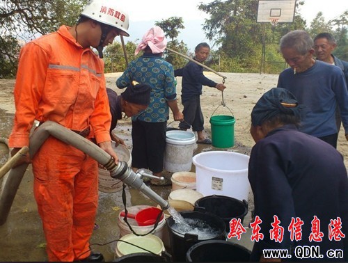此次送水工作中,消防官兵共為展福東村送上了7噸“清泉”,有效緩解了該村230余戶村民的吃水難題,得到了村民的高度贊揚。(張曉龍)
